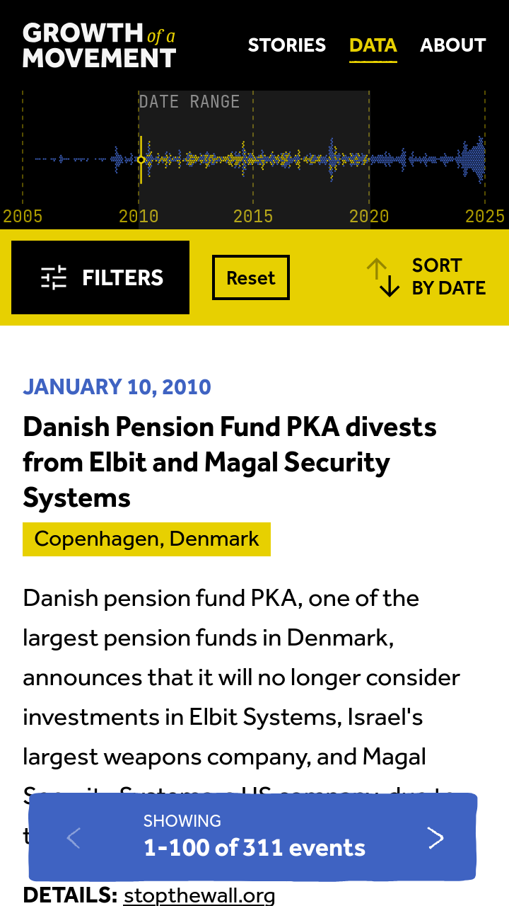 I worked with Visualizing Palestine to redesign their BDS database, celebrating 20 years of action for Palestinian freedom, justice, and equality.